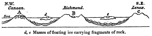 Diagram of erratics being “drifted” from a later text by Lyell (1855, p.92).