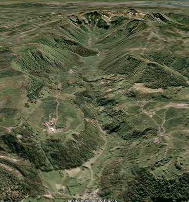 Puys de Sancy is at the head of the valley.